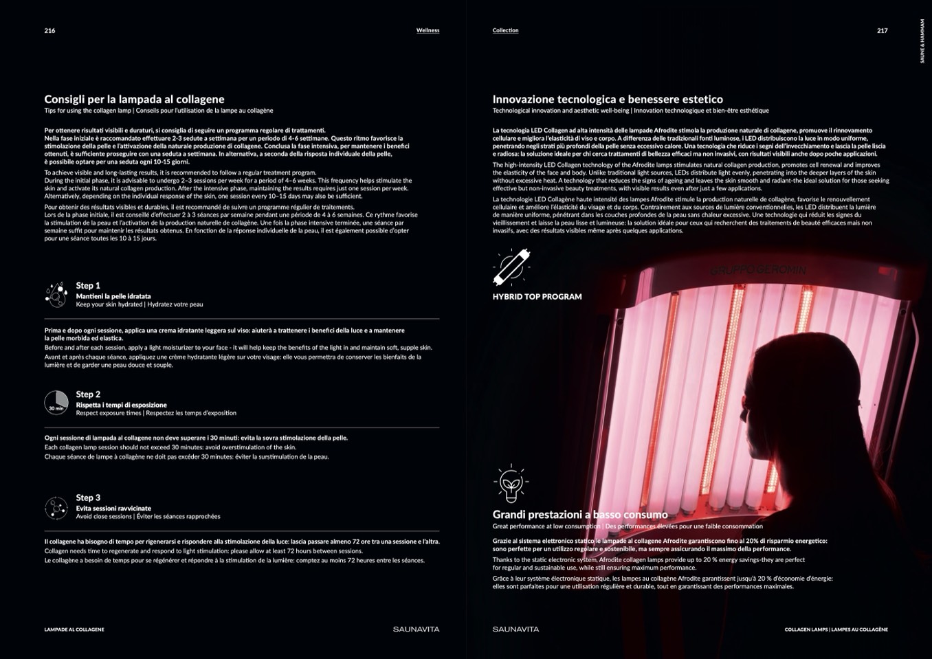 The high-intensity LED Collagen technology of the Afrodite lamps stimulates natural collagen production, promotes cell renewal and improves