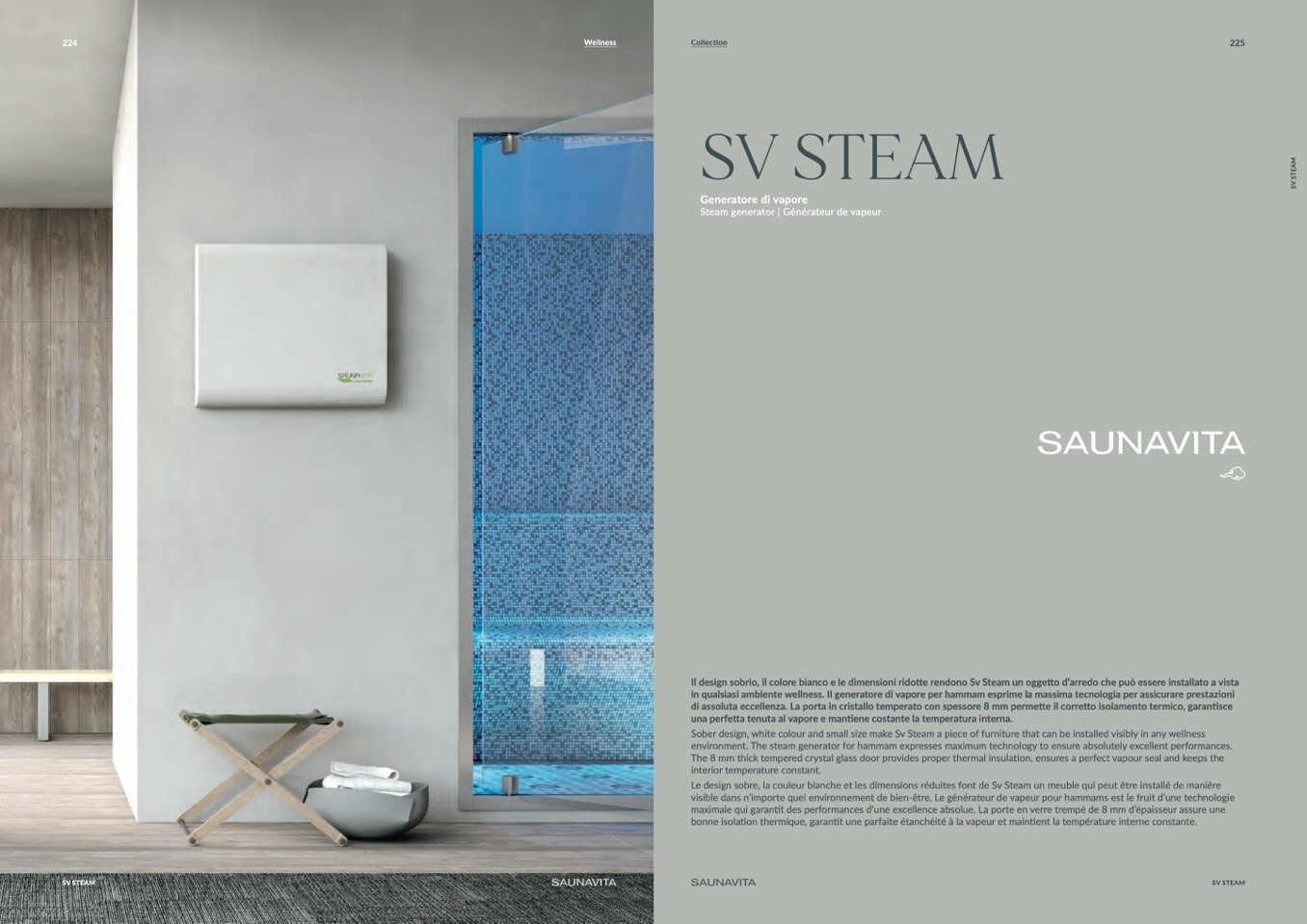 Sober design, white colour and small size make Sv Steam a piece of furniture that can be installed visibly in any wellness