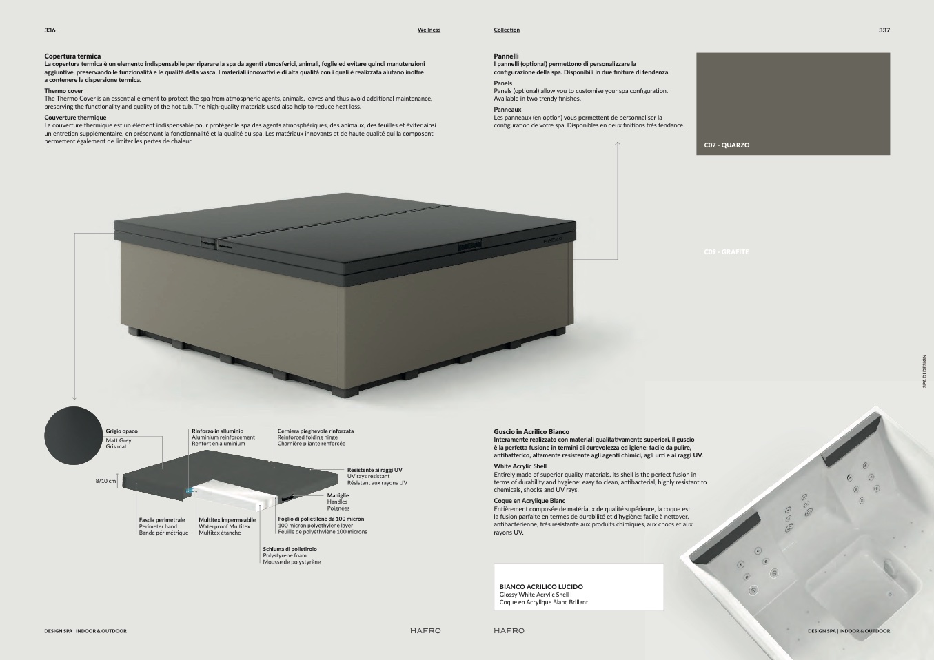 configurazione della spa. Disponibili in due finiture di tendenza.