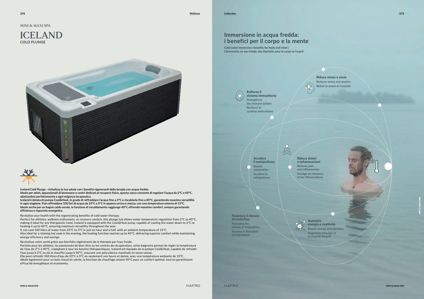 making it ideal for any therapeutic need. Iceland is equipped with the Cool&Heat pump, capable of cooling the water down to 2°C or