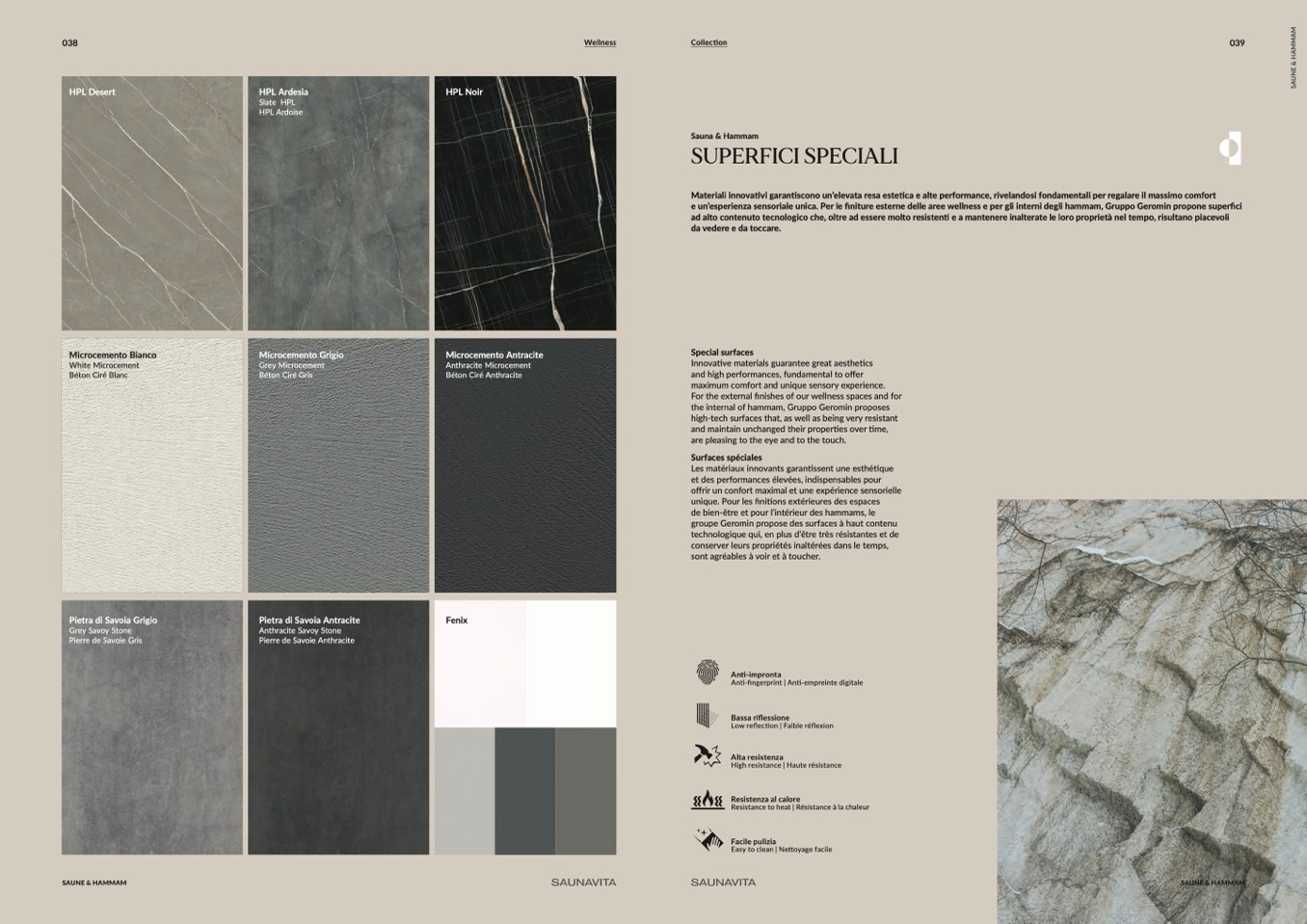 finiture esterne delle aree wellness e per gli interni degli hammam, Gruppo Geromin propone superfici
