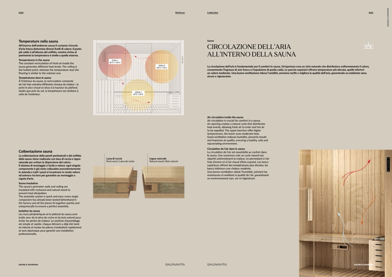 è fondamentale per il comfort in sauna. Un’apertura crea un ciclo naturale che distribuisce uniformemente il calore,