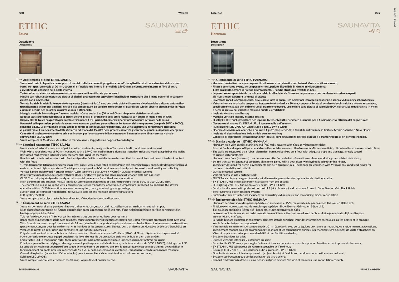 ∙ Sauna made of natural wood, free of paint or other treatments, designed to offer users a healthy and pure environment;
