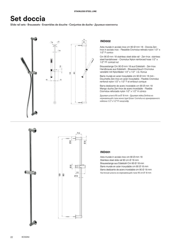 Душевая штанга 90 см Ø 18 mm - Душевая лейка ZenInox из