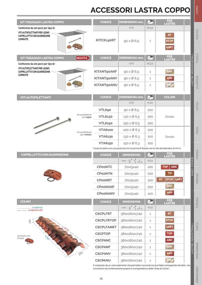 È composto da un unico elemento che permette il raccordo tra due falde contrapposte del tetto, che
