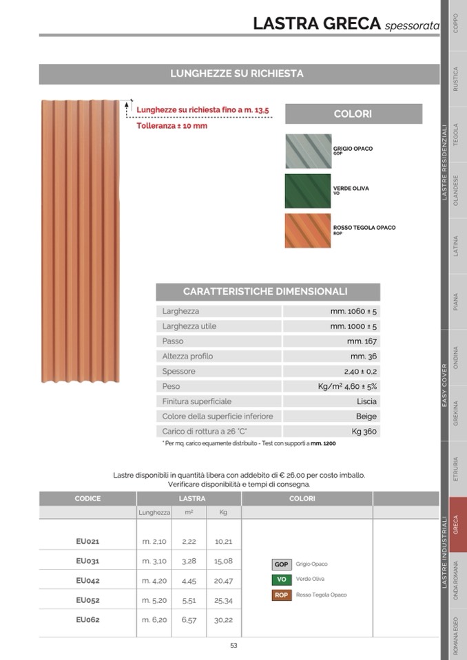 Lastre disponibili in quantità libera con addebito di € 26,00 per costo imballo.
