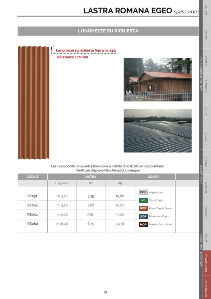 Lastre disponibili in quantità libera con addebito di € 26,00 per costo imballo.