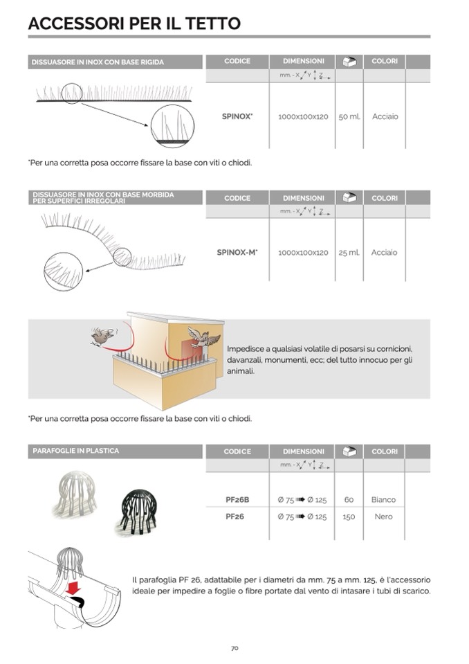 Impedisce a qualsiasi volatile di posarsi su cornicioni,