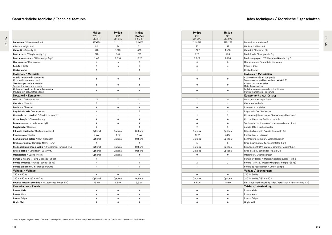 * Include il peso degli occupanti / Includes the weight of the occupants / Poids du spa avec les utilisateurs inclus / Umfasst das Gewicht mit der |nsassen