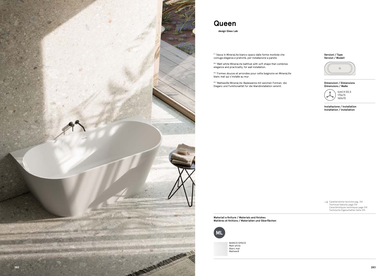 Vasca in MineraLite bianco opaco dalle forme morbide che