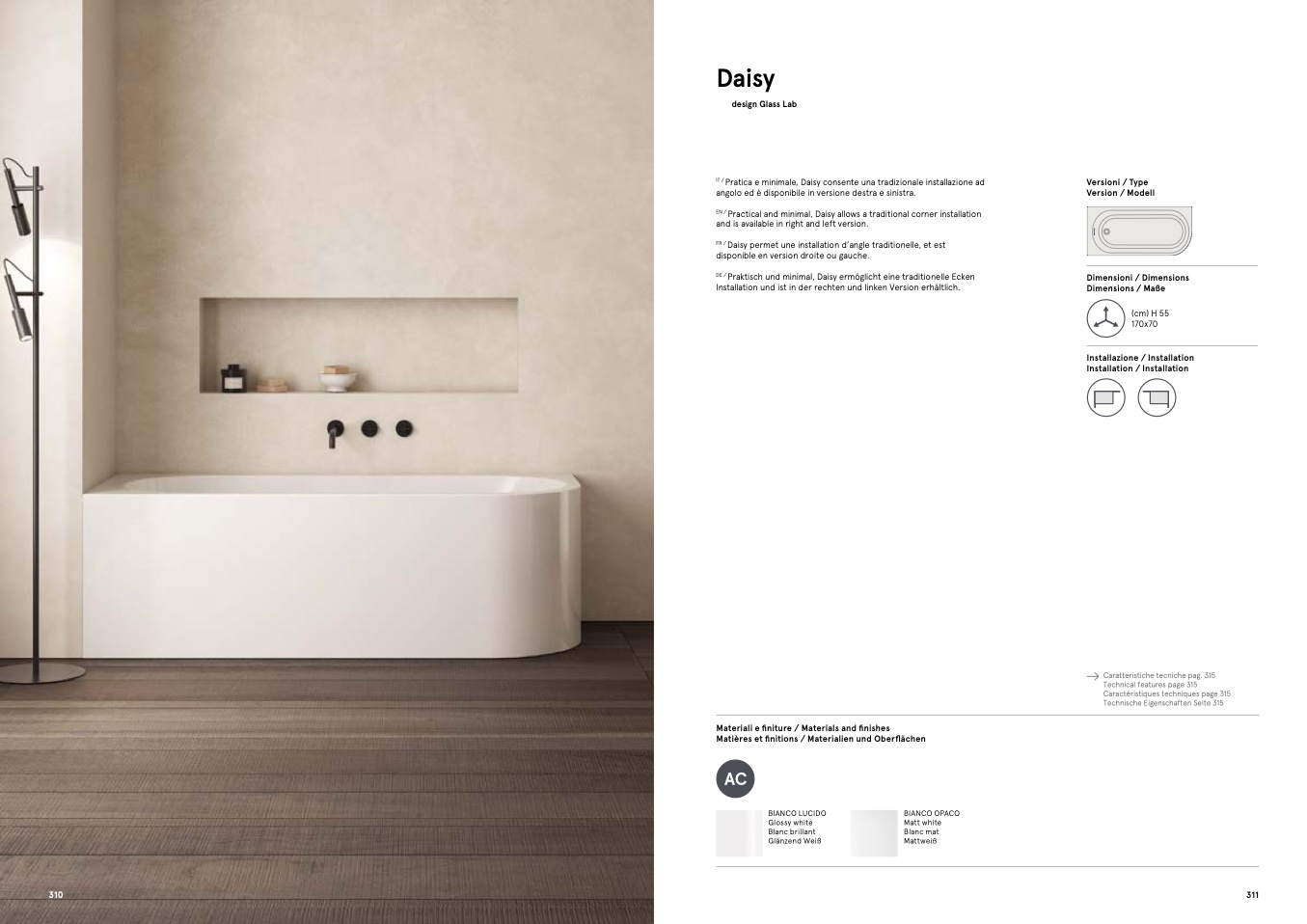 angolo ed è disponibile in versione destra e sinistra.