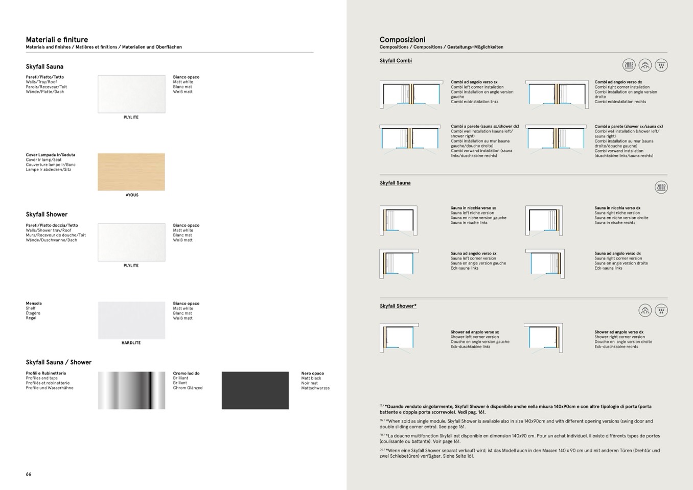 *Wenn eine Skyfall Shower separat verkauft wird, ist das Modell auch in den Massen 140 x 90 cm und mit anderen Türen (Drehtür und