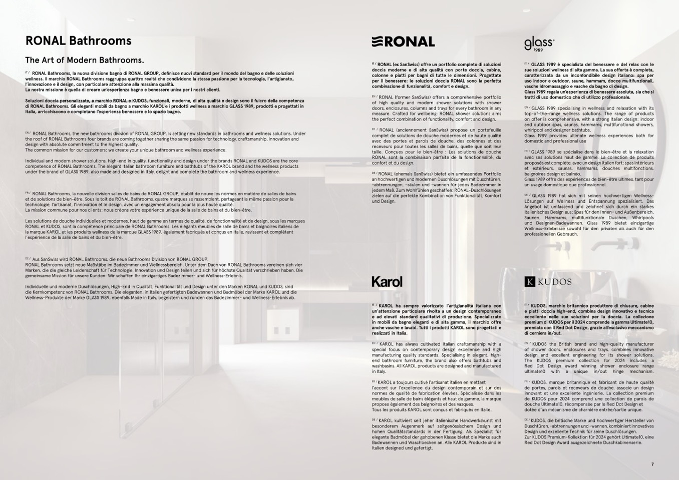 RONAL Bathrooms setzt neue Maßstäbe im Badezimmer und Wellnessbereich. Unter dem Dach von RONAL Bathrooms vereinen sich vier