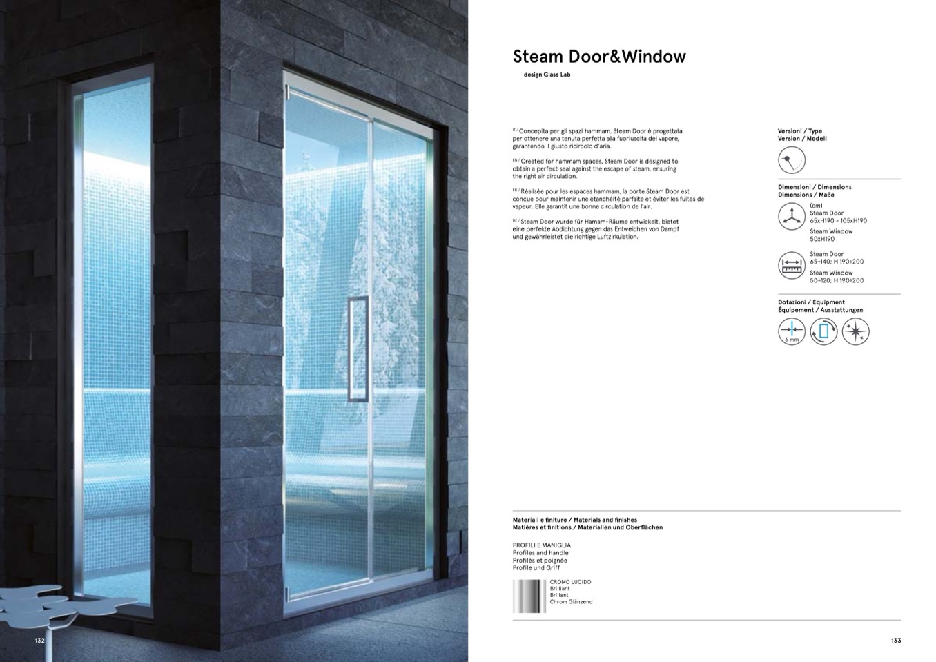 Concepita per gli spazi hammam, Steam Door è progettata