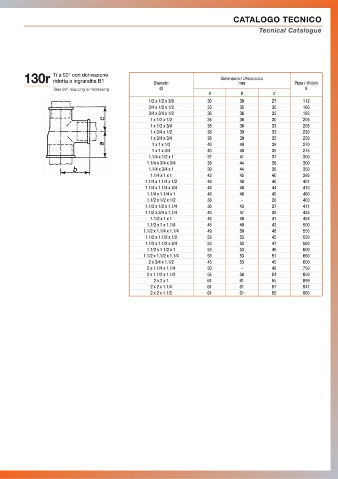 Tees 90° reducing or increasing