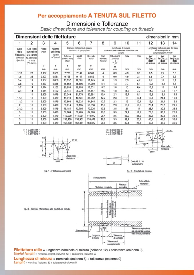 Filettatura utile = lunghezza nominale di misura (colonna 12) + tolleranza (colonna 9)