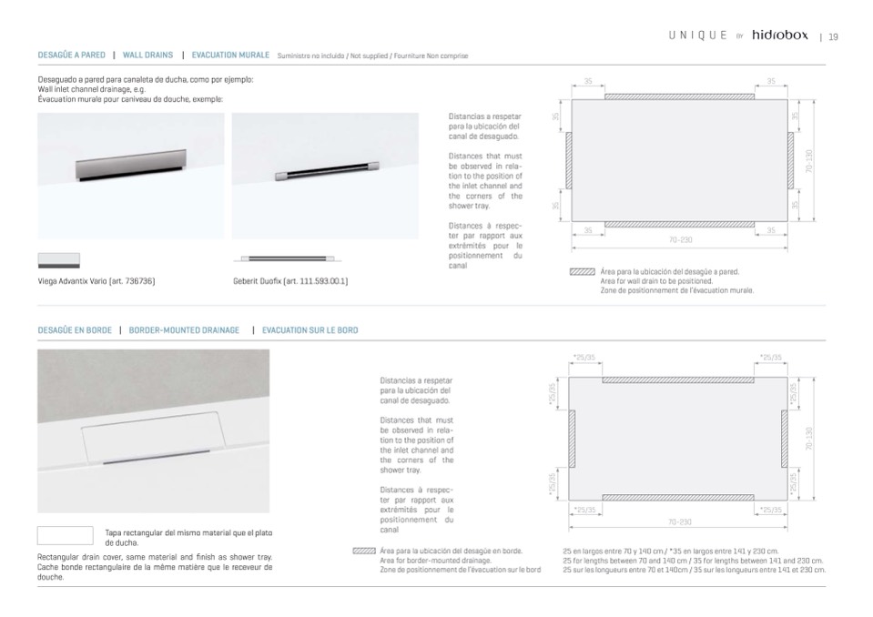 Desaguado a pared para canaleta de ducha, como por ejemplo: