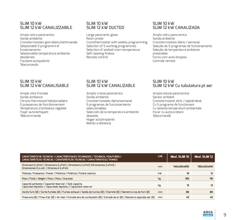 Uscita fumi (Ø) / Sortie fumées (Ø) / Fumes exhaust / Salida de humos (Ø) / Chaminé (Ø) / Diametrul coş de fum (Ø)