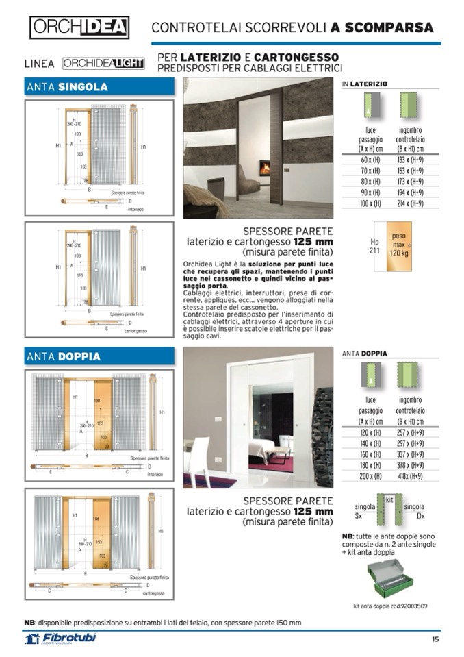 NB: disponibile predisposizione su entrambi i lati del telaio, con spessore parete 150 mm