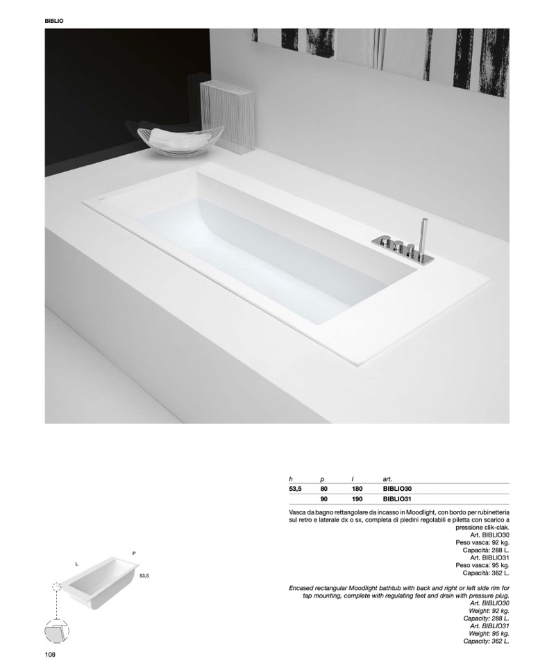 Vasca da bagno rettangolare da incasso in Moodlight, con bordo per rubinetteria