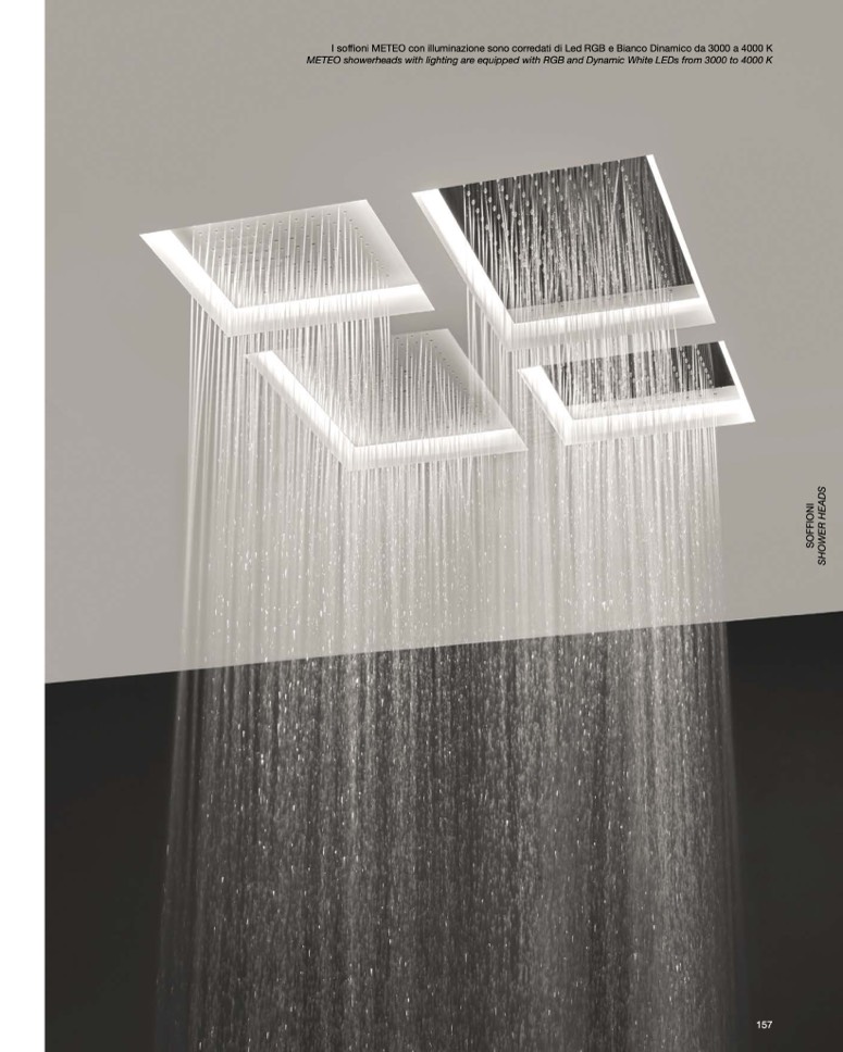 METEO showerheads with lighting are equipped with RGB and Dynamic White LEDs from 3000 to 4000 K