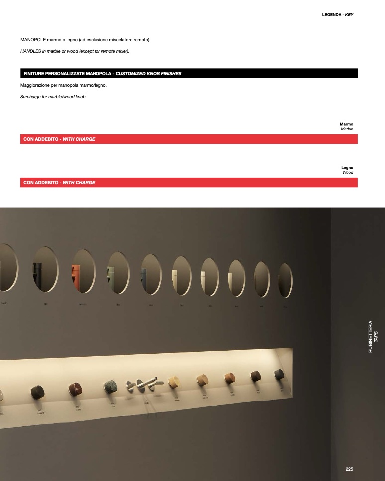 MANOPOLE marmo o legno (ad esclusione miscelatore remoto).