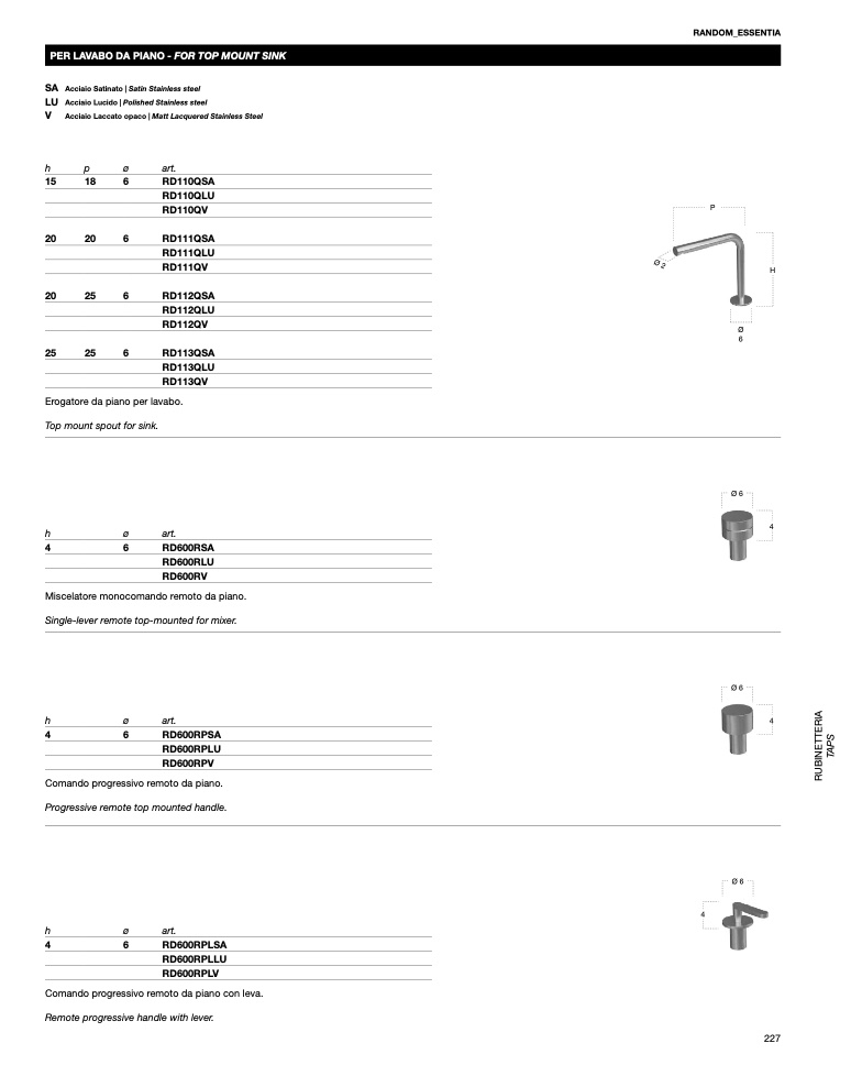 PER LAVABO DA PIANO - FOR TOP MOUNT SINK