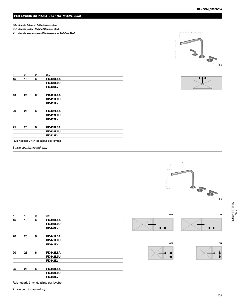 PER LAVABO DA PIANO - FOR TOP MOUNT SINK
