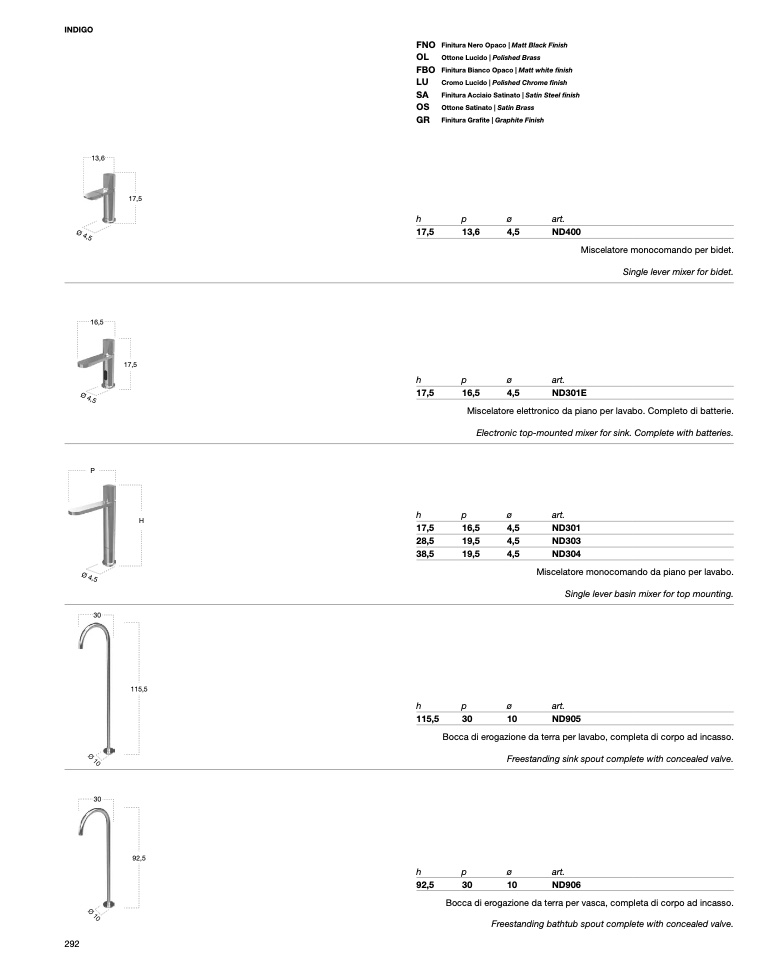 Bocca di erogazione da terra per lavabo, completa di corpo ad incasso.