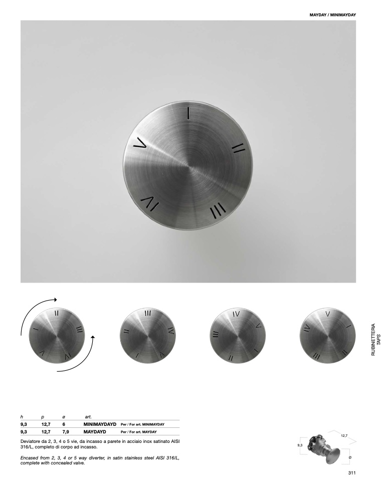 Encased from 2, 3, 4 or 5 way diverter, in satin stainless steel AISI 316/L,