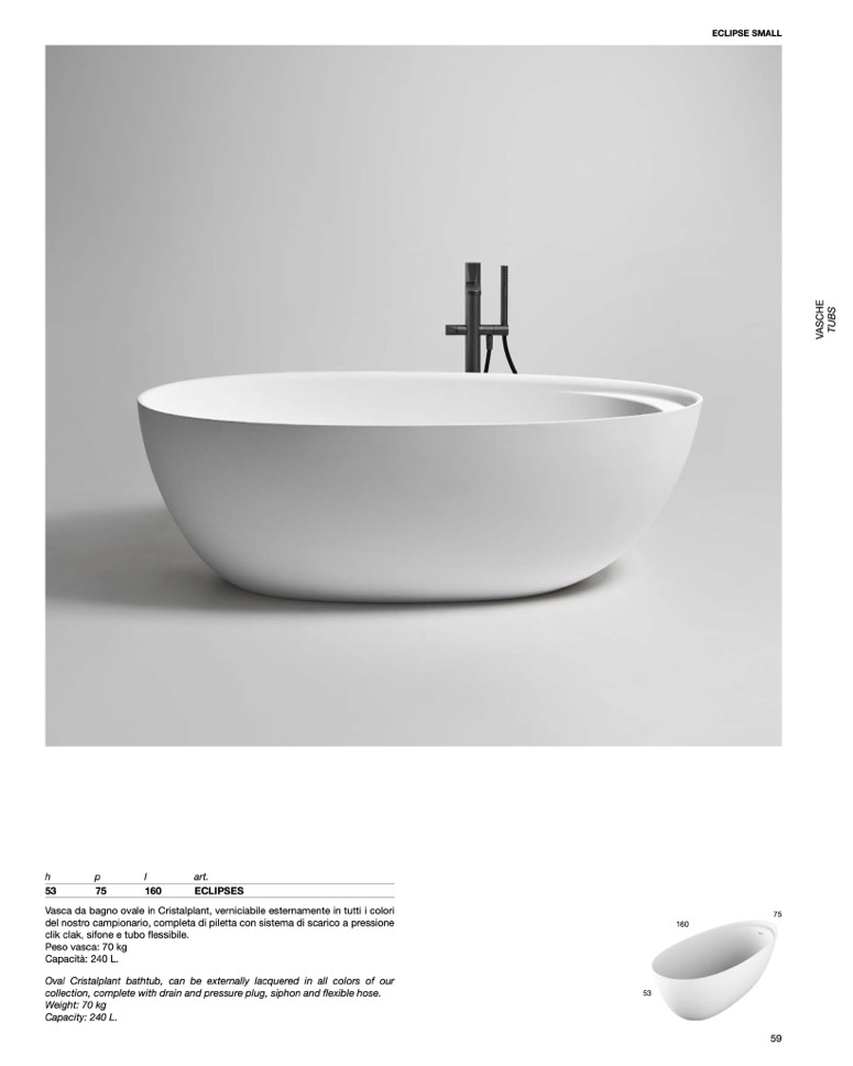 Oval Cristalplant bathtub, can be externally lacquered in all colors of our