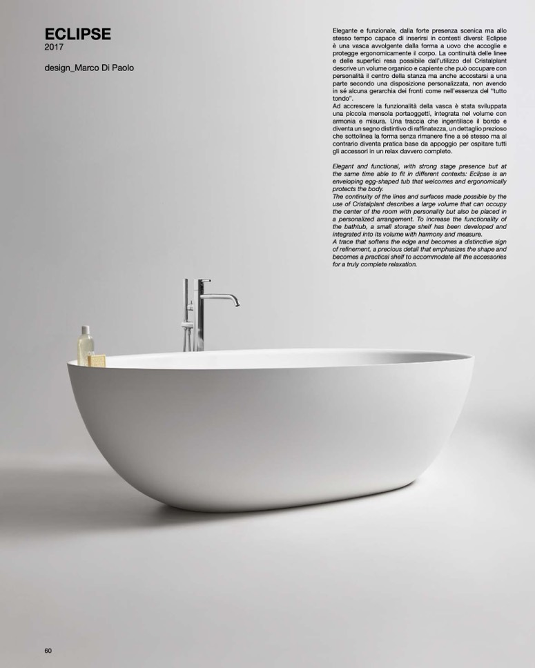enveloping egg-shaped tub that welcomes and ergonomically