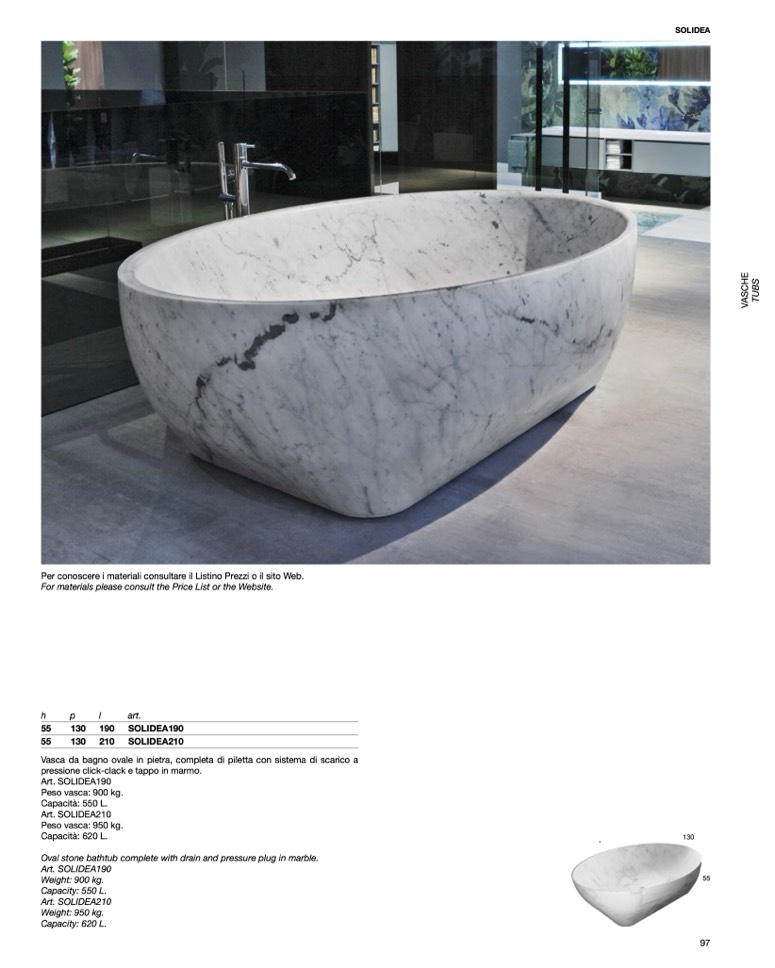 Vasca da bagno ovale in pietra, completa di piletta con sistema di scarico a