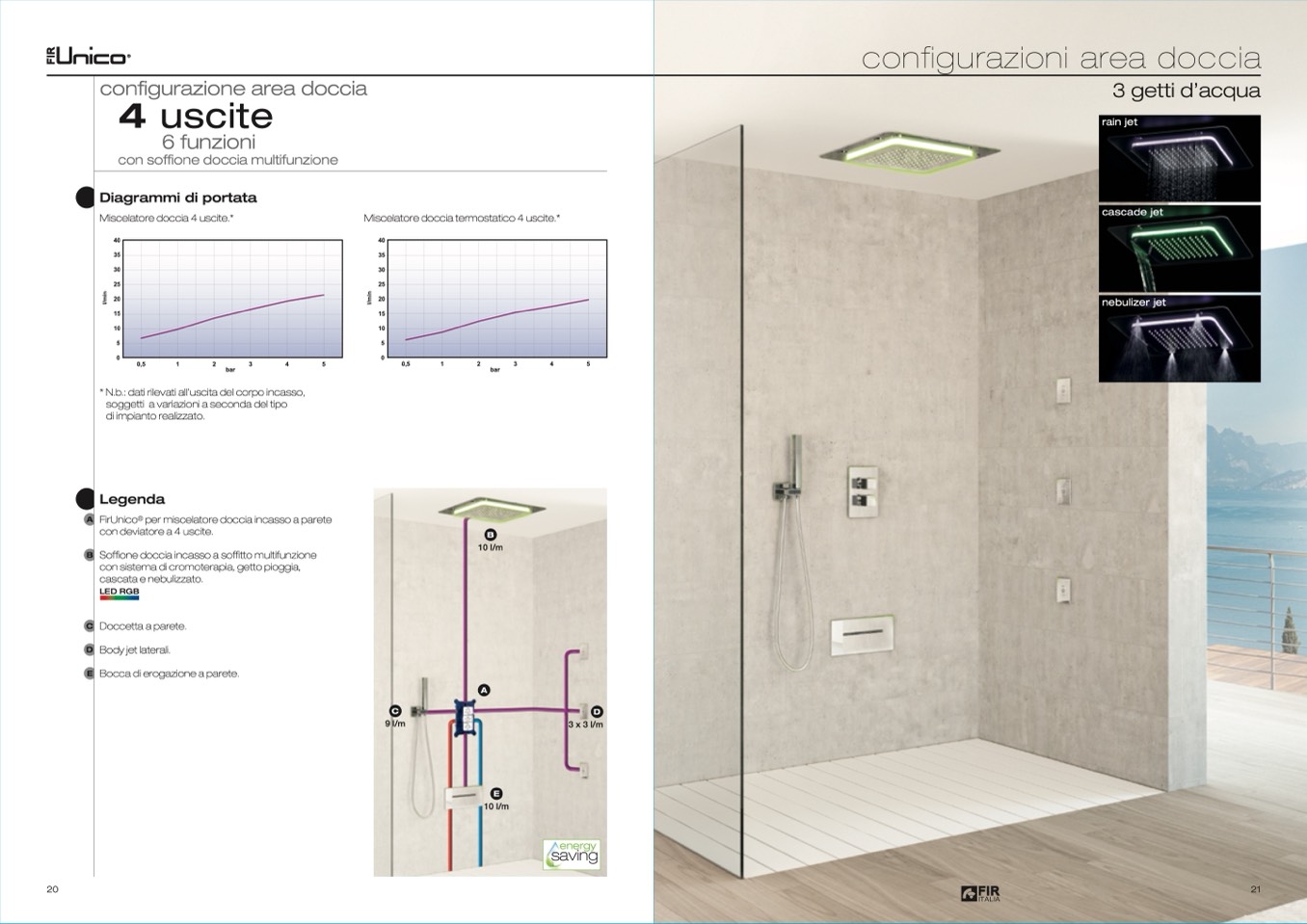 E Bocca di erogazione a parete.