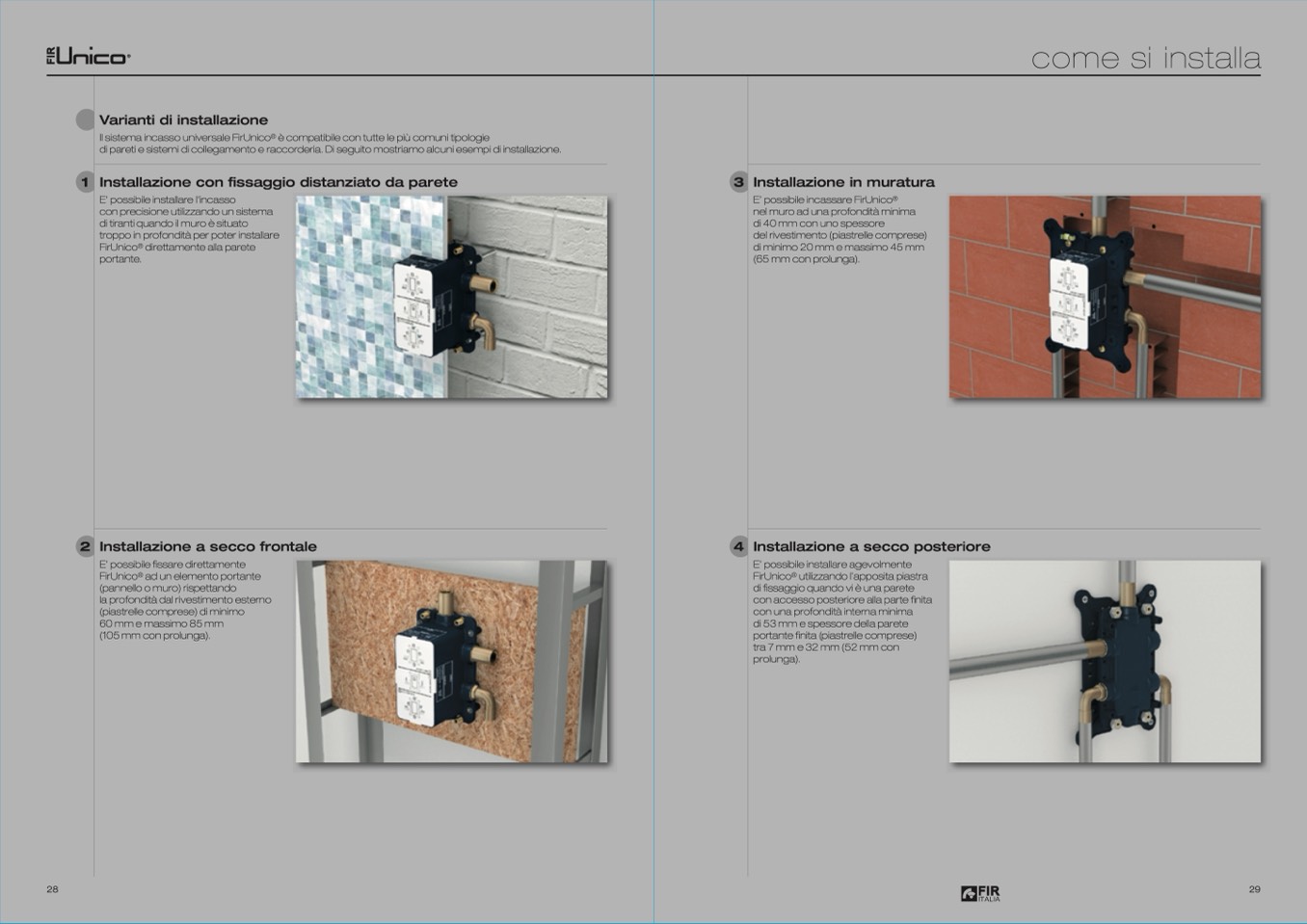 di pareti e sistemi di collegamento e raccorderia. Di seguito mostriamo alcuni esempi di installazione.