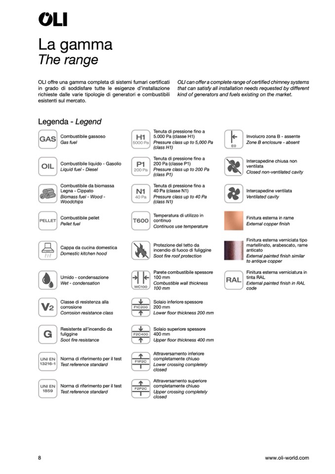 OLI can offer a complete range of certified chimney systems
