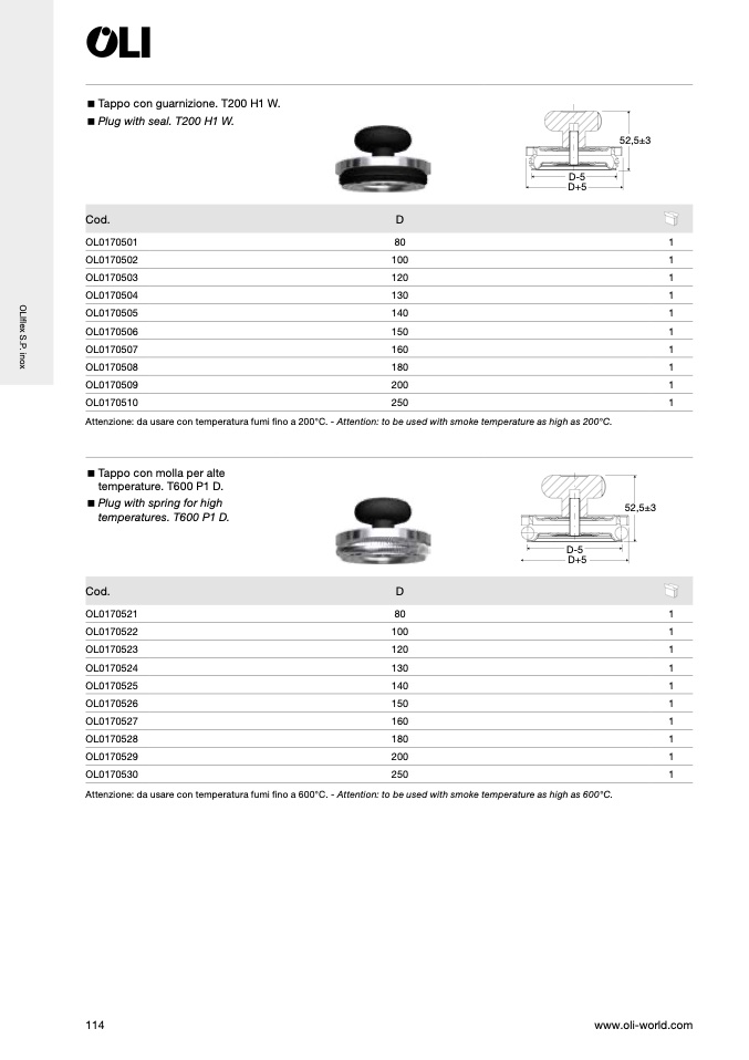 Attenzione: da usare con temperatura fumi fino a 200°C. - Attention: to be used with smoke temperature as high as 200°C.