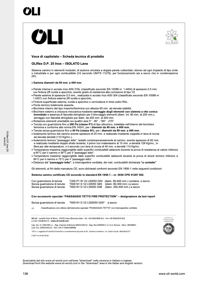 OLI srl - Località Piani di Mura - 25070 Casto (Brescia) Italia - Tel. +39 0365/890.611 - Fax +39 0365/879.922
