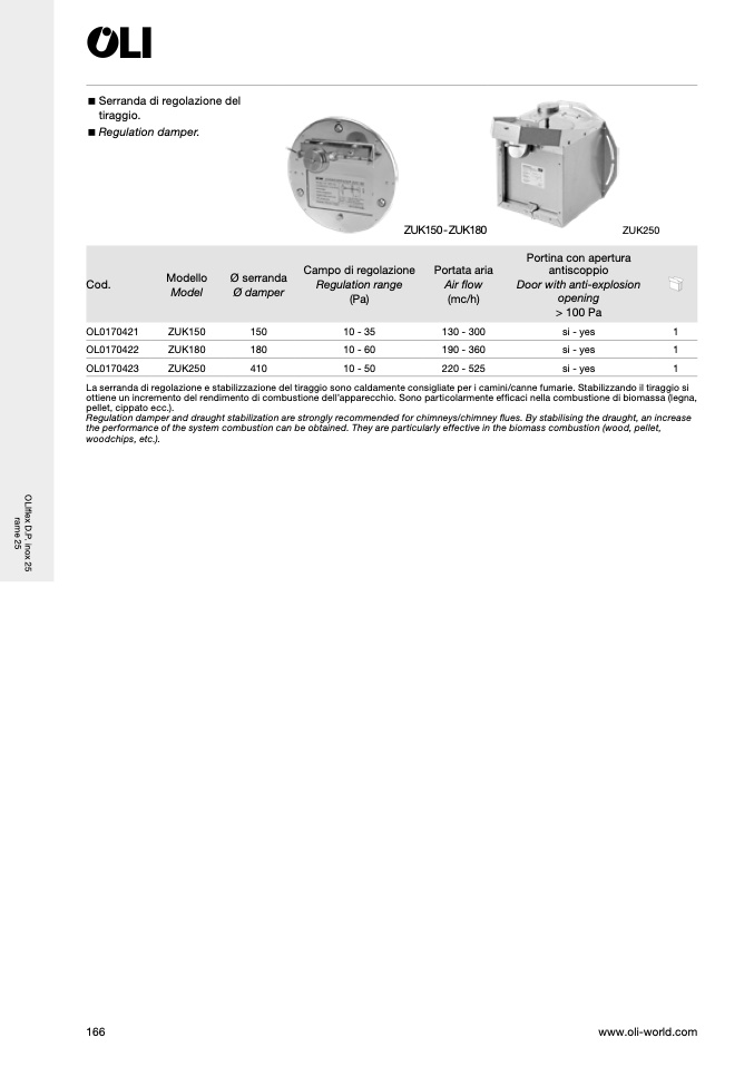 La serranda di regolazione e stabilizzazione del tiraggio sono caldamente consigliate per i camini/canne fumarie. Stabilizzando il tiraggio si