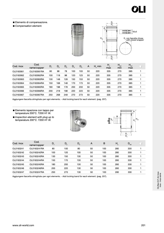 Aggiungere fascetta stringitubo per ogni elemento. - Add locking band for each element. (pag. 207).