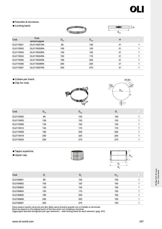 Aggiungere fascetta stringitubo per ogni elemento. - Add locking band for each element. (pag. 207).