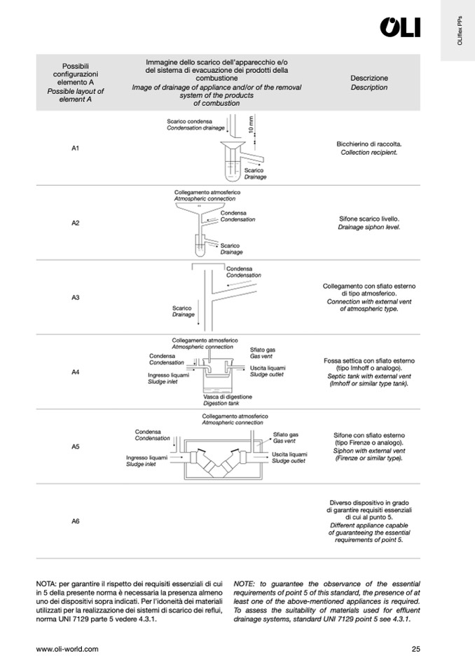 drainage systems, standard UNI 7129 point 5 see 4.3.1.