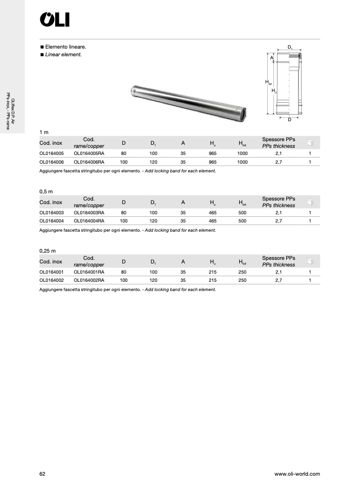 Aggiungere fascetta stringitubo per ogni elemento. - Add locking band for each element.