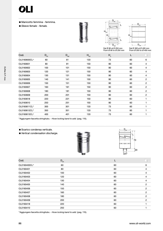 Aggiungere fascetta stringitubo. - Hose locking band to add. (pag. 115).
