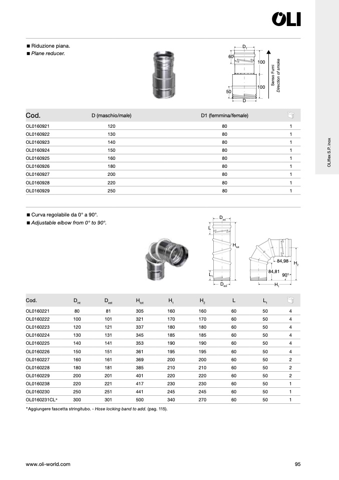 Curva regolabile da 0° a 90°.
