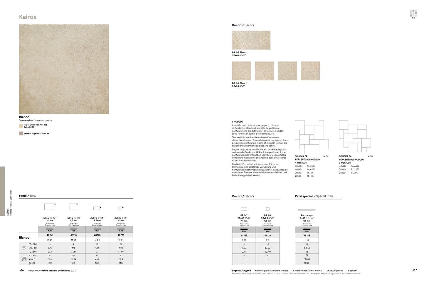 Per motivi tecnici i pesi e imballi sopra indicati possono variare. / For technical reasons the weights and packaging info indicated above may vary.