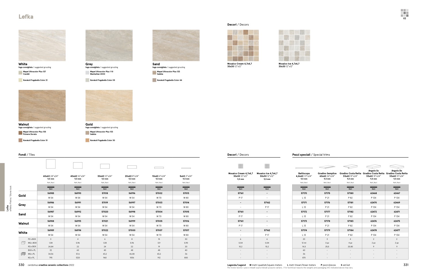 Per motivi tecnici i pesi e imballi sopra indicati possono variare. / For technical reasons the weights and packaging info indicated above may vary.
