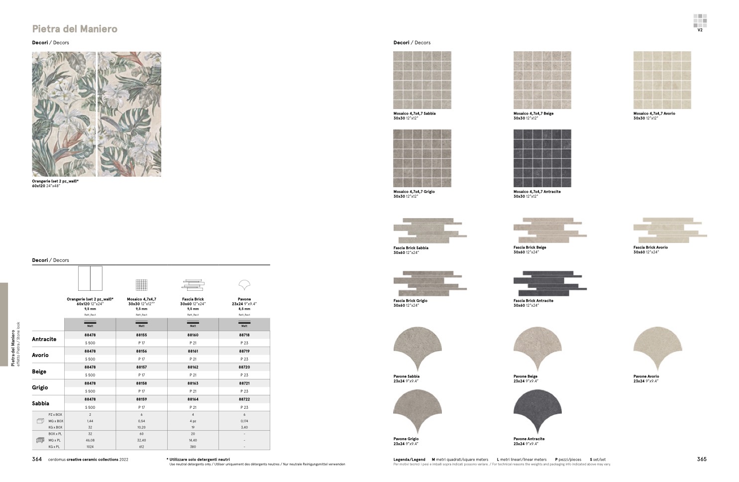 Per motivi tecnici i pesi e imballi sopra indicati possono variare. / For technical reasons the weights and packaging info indicated above may vary.