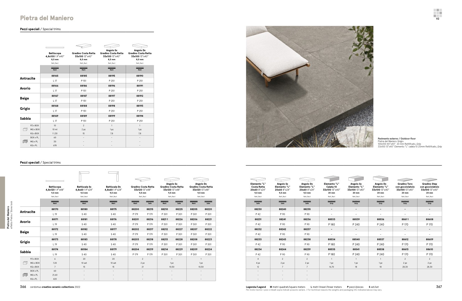 Per motivi tecnici i pesi e imballi sopra indicati possono variare. / For technical reasons the weights and packaging info indicated above may vary.