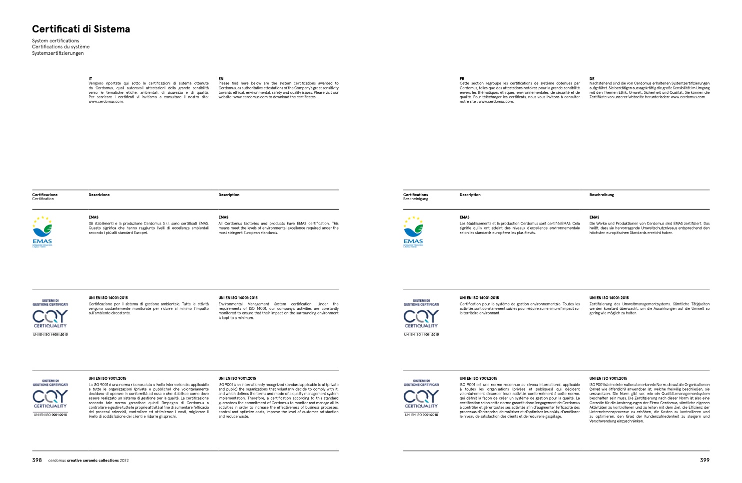 Gli stabilimenti e la produzione Cerdomus S.r.l. sono certificati EMAS.